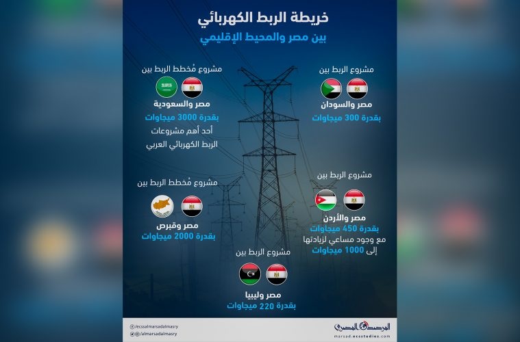 سعى قطاع الكهرباء المصري الى تطوير ادائه في تنويع مصادر الطاقة الكهربائية بانتهاج سياسات جديدة تعتمد على تجارة الطاقة على المستويين الإقليمي والدولي وذلك عن طريق الربط الكهربائي مع الدول المجاورة كما يلي:
